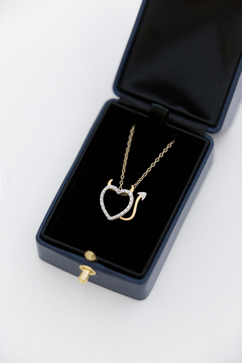 Ложемент внутри располагается под небольшим наклоном. Благодаря этому украшение выглядит наилучшим образом. В верхней части ложемента имеются небольшие прорези для крепления украшений и петелька-язычок для удобного извлечения из коробочки. Ложемент является двухсторонним: с одной стороны — бархат, с другой — шелк. Фурнитура классического золотистого/серебристого цвета прекрасно сочетается с украшениями из любого металла.