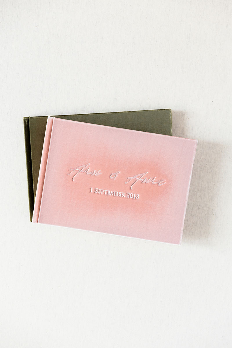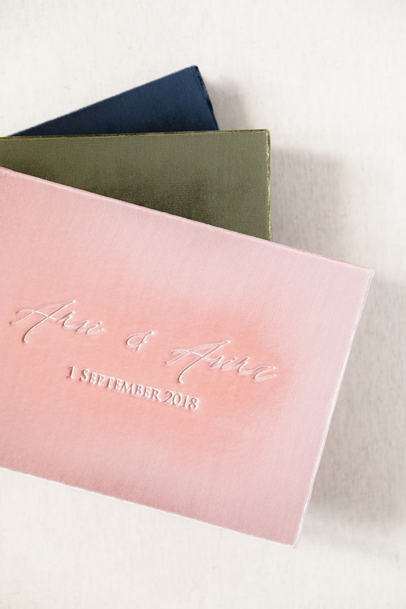 Твёрдый переплёт — из натурального шелкового бархата, внутри — прошитый бумажный блок. Блок состоит из 40 или 120 чистых листов молочного цвета плотностью 120г/м2.