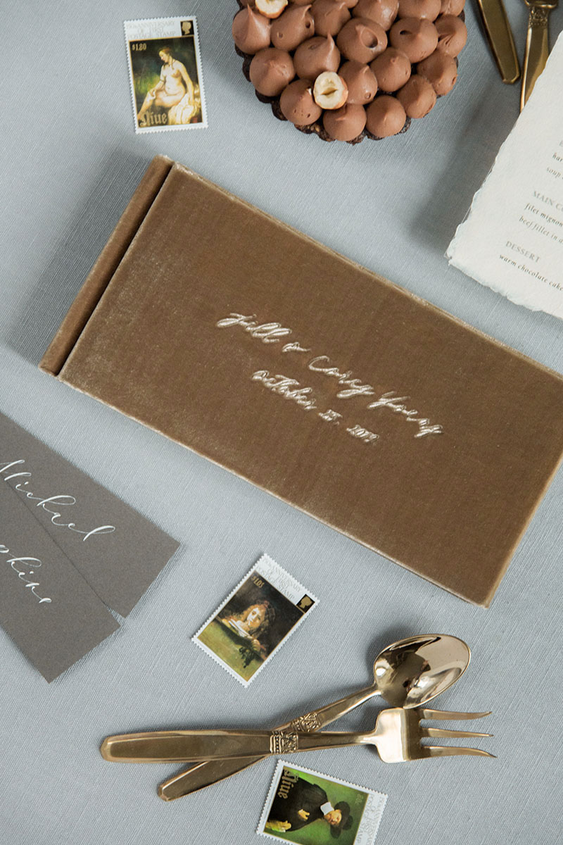 Твёрдый переплёт — из натурального шелкового бархата, внутри — прошитый бумажный блок. Блок состоит из 40 или 120 чистых листов молочного цвета плотностью 120г/м2.